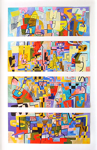 Acrylic on 4 paper strips: