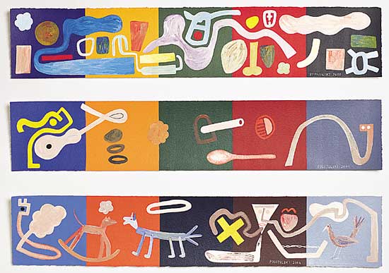 Acrylic on 3 paper strips: