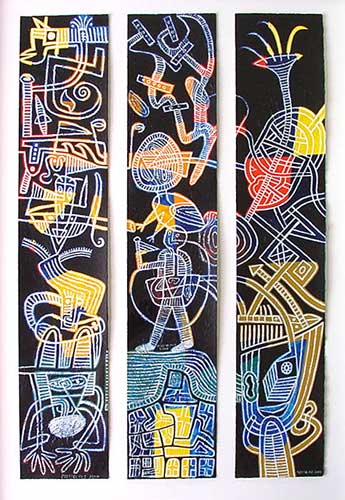 Acrylic on 3 vertical paper strips:
